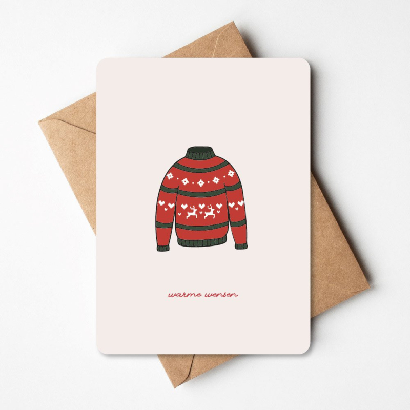 Mooi, lief kerstkaartje met de tekst Warme wensen. Voor bijzondere gelegenheden en voorzien van mooie, zachte kleuren! Op de achterkant is genoeg plek voor een persoonlijke boodschap (inclusief donker taupekleurige envelop).
