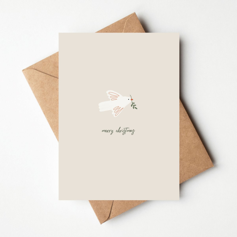 Mooi, lief kerstkaartje met de tekst Merry Christmas. Voor bijzondere gelegenheden en voorzien van mooie, zachte kleuren! Op de achterkant is genoeg plek voor een persoonlijke boodschap (inclusief donker taupekleurige envelop).