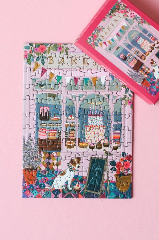 Welkom in jouw eigen kleine bakkerij! Deze minipuzzel toont een charmant tafereel vol cupcakes, taarten en een lief, pluizig vriendje. Deze minipuzzels met mooie afbeeldingen in warme kleuren zijn perfect voor een creatieve pauze, als cadeautje of om te verzamelen!