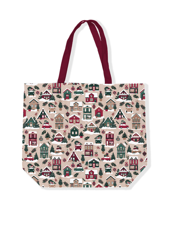 Mooie, praktische shopper met sfeervolle kersthuisjes aan beide zijden. Deze shopper is gemaakt van polyester, een milieuvriendelijk alternatief voor plastic tassen. Een trendy tas voor dagelijks gebruik!